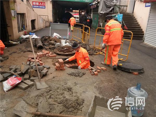 材料备齐后,师傅们就进场施工了,他们把路面挖开后将原有破损的瓷管拿出,又换上了管径更大的波纹管,并把污水井进行了维修加固,历时1天半施工完毕,同时将路面恢复,彻底解决了管道堵塞的难题,确保了南山市场复工复产的有序进行,为居民日常生活保障筑牢基础。