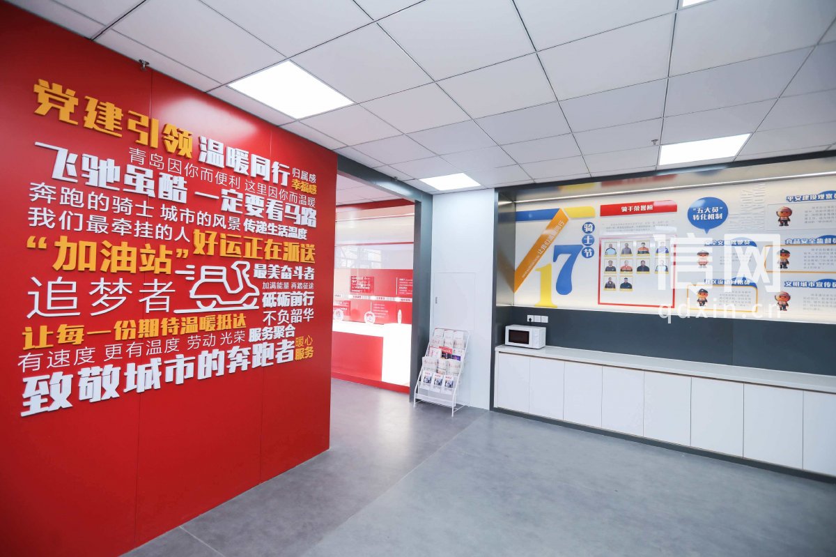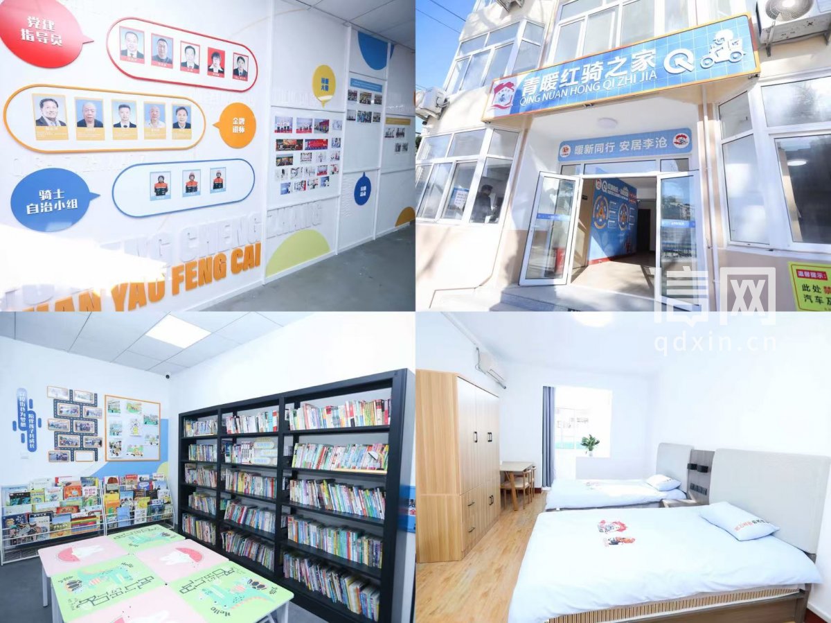位于市北区鞍山二路的首个市网约配送行业党建阵地,搭建集党建教育、基层治理、暖心服务、技能提升、文化休闲五大功能于一体的“青暖红骑”行业党建载体,为骑手提供良好的学习交流、自我提升平台。位于李沧区汾阳路的市骑手安居工程,实现从“居住空间”到“红骑向党·青暖安居”的升华,致力成为骑手群体的“城市避风港”与“成长加油站”,让骑手真正融入城市发展,共享城市温暖。